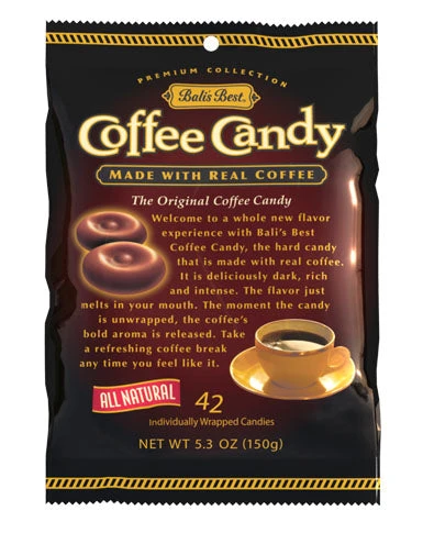 BALI’S BEST COFFE CANDY: Cane Sugar, Glucose, Milk Powder, Coffee Extract, Natural Coffee Flavor, Coconut Oil, Salt, Caramel CONTAINS: Milk