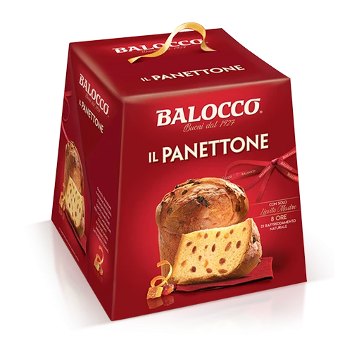 The Balocco Panettone is a symbol of Christmas, and is made from naturally leavened dough with a pure yeast starter and a generous portion of candied fruit and sultanas.
