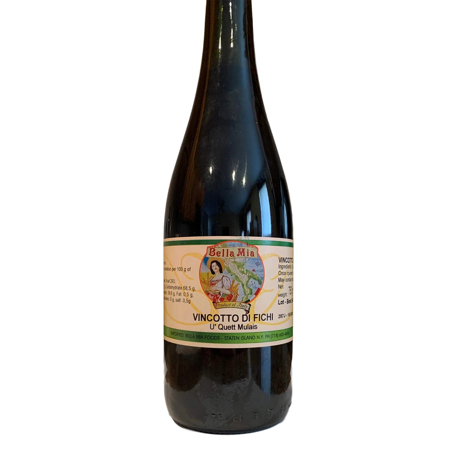 This item is imported Italian Fig Syrup. This item is mainly used for baking, but can also be used in cooking. The syrup comes in a 750-gram glass bottle, which is equivalent to about 26 ounces.