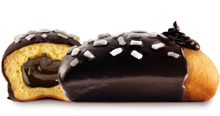 Naturally leavened baked product filled with chocolate cream (16%) and covered.