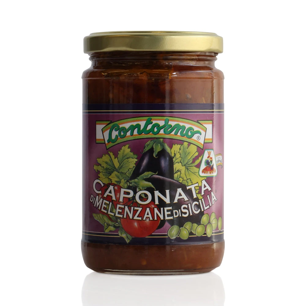 A vibrant blend of eggplant, celery, onions, capers and olives, it is delicious served atop crusty bread or spooned into gourmet sandwiches. Its piquant, tangy flavor packed full of sun-ripened vegetables will have you reaching for more.