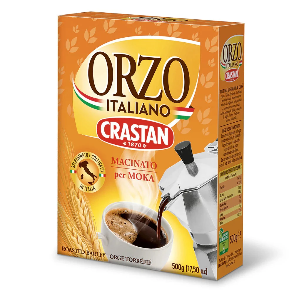 Our Italian Roasted and Ground Barley for Moka comes from the rigorous selection of the best varieties of barley, toasted and ground with the care and artisanal attention that have always characterised Crastan products. Barley coffee has always been on Italian tables: it is the ideal breakfast for children, perfect for all those who want to avoid caffeine, for lovers of simple and natural flavours, for pregnant women.