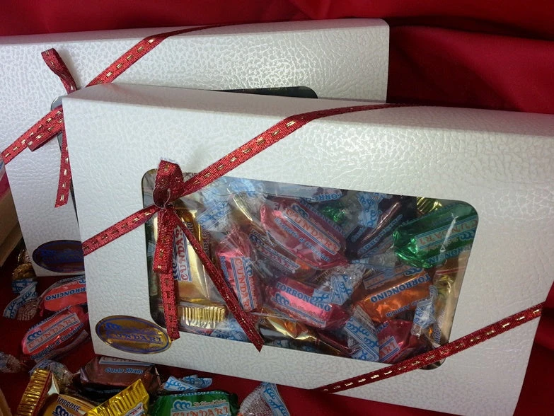 Composition of mixed nougat, packed in box