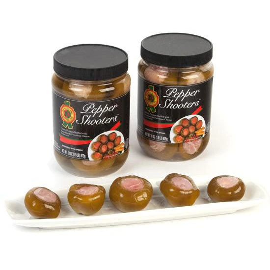 Daniele Pepper Shooters are a delightful antipasti delicacy: spicy cherry peppers hand-stuffed with prosciutto and provolone cheese.
