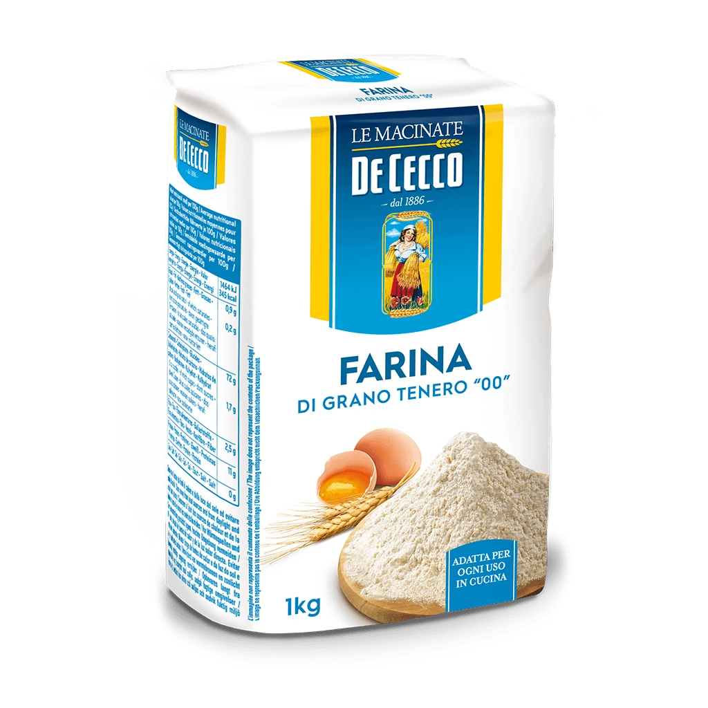 De Cecco Soft Wheat Flour “00” is ideal for creating various dishes in a simple way at home. You can use it to make excellent fresh pasta, fragrant bread, or a soft dough for pizza, breading and sweet creations. Due to its natural versatility, soft wheat flour is ideal for any use in the kitchen. Try also the De Cecco durum wheat flour ideal for pasta and bread.
