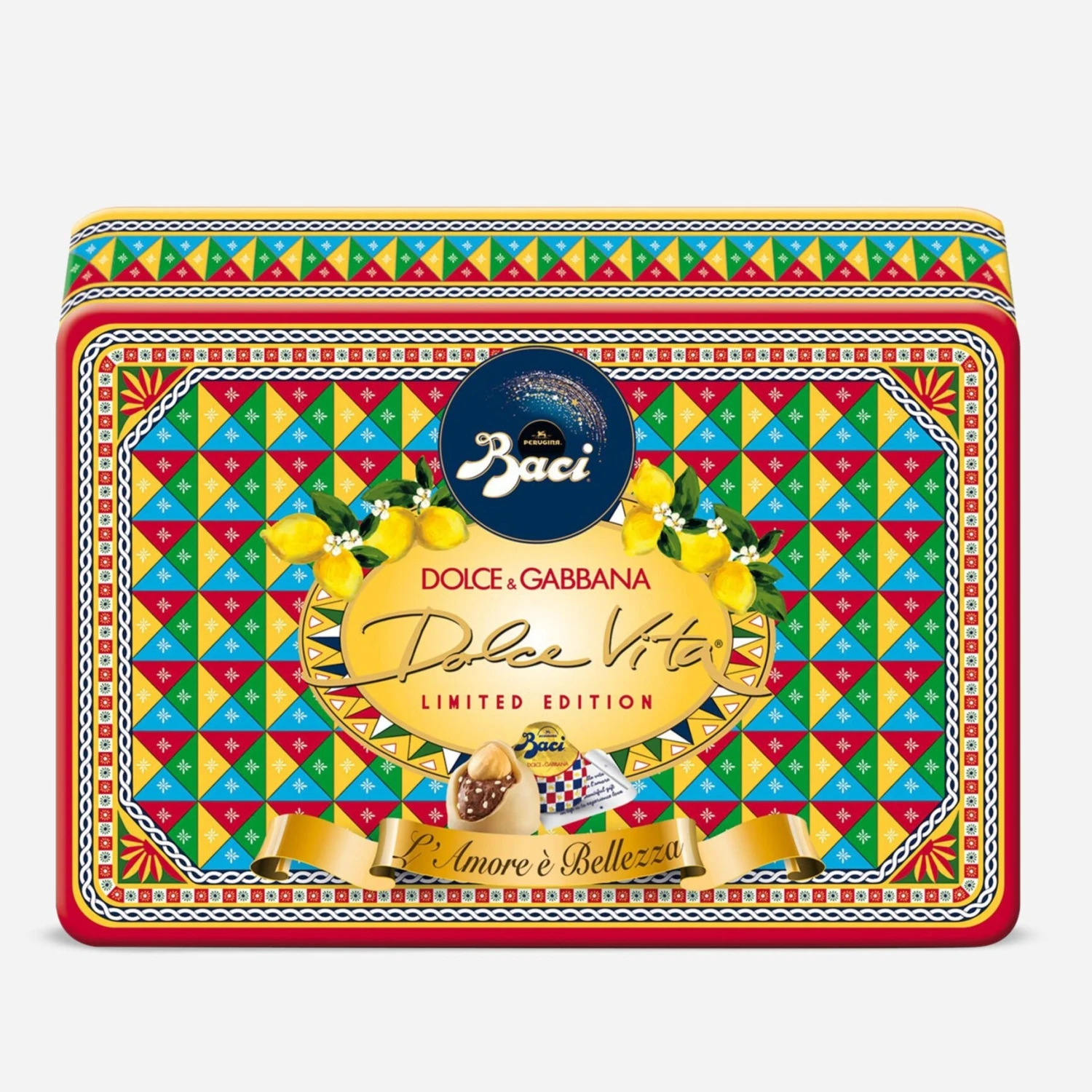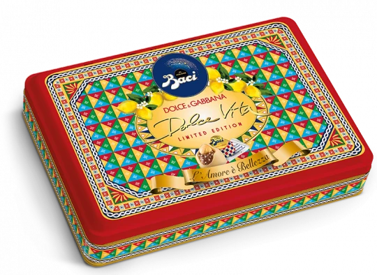 The new elegant tin box is a double surprise. It comes bearing the new Baci® Perugina® Dolce Vita® chocolate truffles on the inside and the creativity of Dolce&Gabbana on the outside. This is a gift to be remembered, precious and refined, suited to all occasions, to warm hearts and share small joys with the taste of Baci® Perugina®.