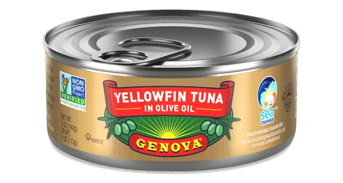 Premium Yellowfin Tuna wild caught from deep waters, Genova select Yellowfin is all natural with no additives or preservatives. Packed in the Mediterranean tradition with olive oil, it has delicious flavor and is a healthy food that is naturally rick in Omega-3.