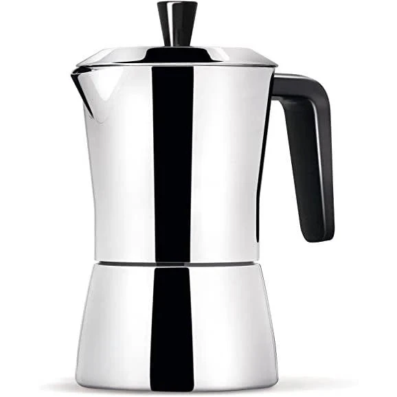 Elevate your coffee game with the Giannini TUA Stovetop Espresso Maker. Made with high-quality 18/10 stainless steel, this Italian-designed machine is suitable for all heat sources, including induction. Brew 6 cups or use the included reducer for a smaller batch. The black plastic knob and handle add a touch of sleekness. Experience the perfect cup of espresso every time.