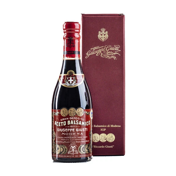 Extraordinarily dense and with a pleasantly sweet aftertaste; from the old recipe of Riccardo Giusti, a selection of the latest harvest and a long aging in the antique barrels of Giusti’s Family renders this round, full bodied balsamic. To be added directly to all foods as a thick sauce, it is ideal for barbequed meats and fish, cheeses, fruit, and also devoured alone.