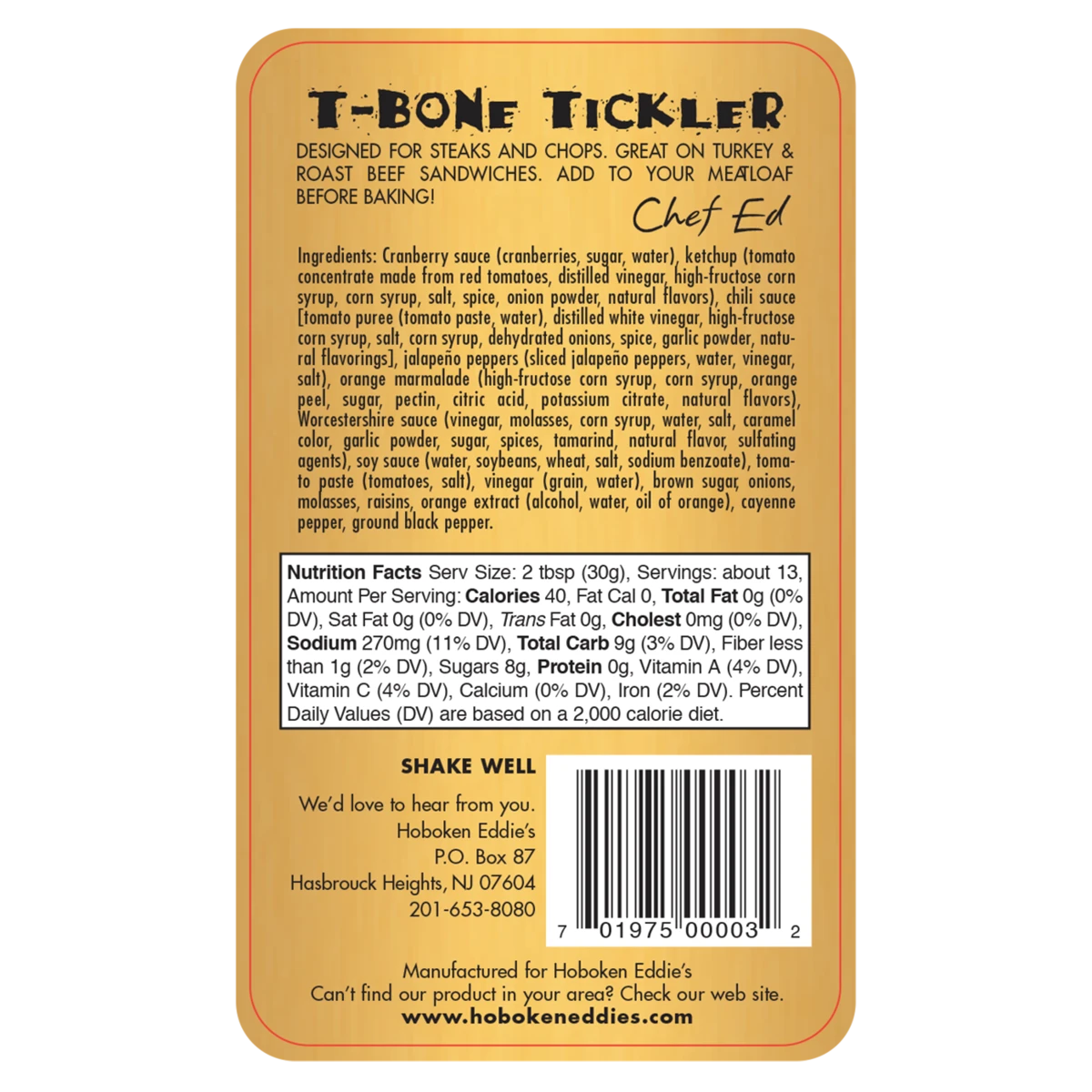 What’s so special about Eddie’s sauces? Chef Edmund Patrick “Hoboken Eddie” McCarthy starts with the highest quality, fresh, all natural ingredients and mixes them with a secret array of herbs and spices to conjure up his taste bud-tantalizing sauces. Never thickened with cornstarch or xanthan gum, you can taste the difference. There are no animal products, fats or oils.