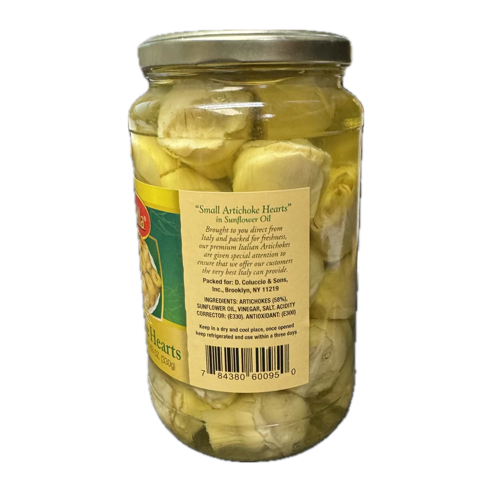 Ingredients: Artichoke hearts (58%), Sunflower oil, Vinegar, Salt, Acidity Corrector: (E330). Antioxidant: (E300)
