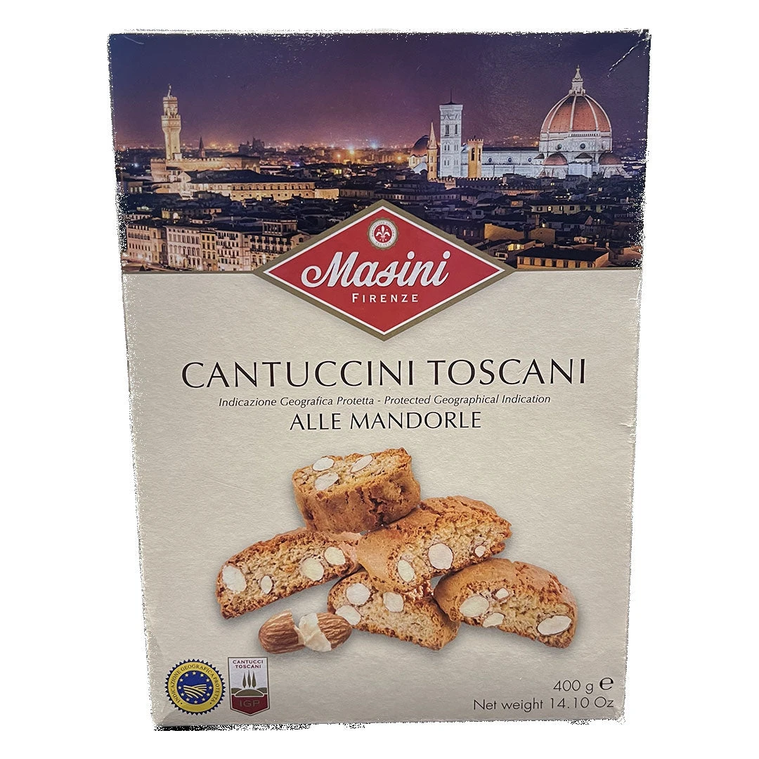 Masini Cantuccini is a crisp almond cookie from Italy. These biscuits are excellent for breakfast alongside espresso drinks such as cappuccinos and are most traditionally enjoyed after an evening meal with a good glass of Vin Santo.
