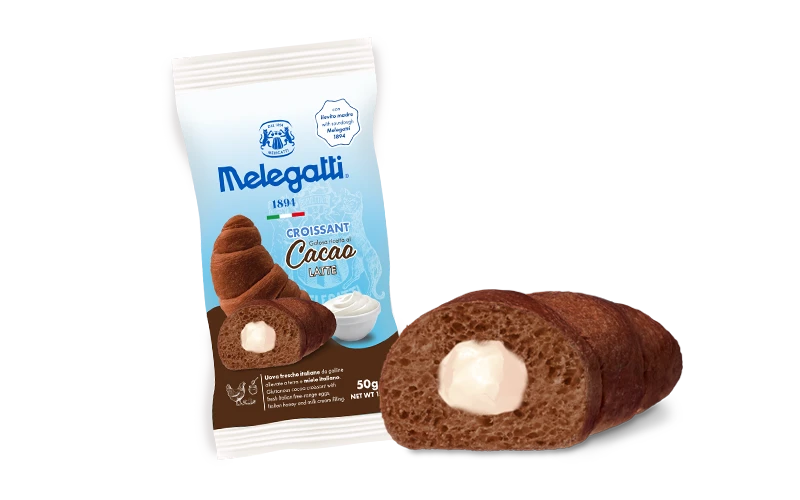 Soft layered pastry enriched with cocoa with a delicate milk cream filling, perfect for a snack for the little ones.