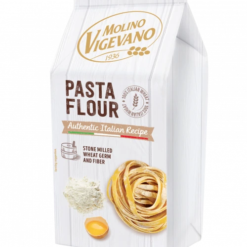 Pasta Flour by Molino Vigevano is the ideal flour to make at home the authentic Italian fresh pasta, with or without egg. Thanks to the detailed recipe and illustration on the back of the package you can make tagliatelle, spaghetti, ravioli and filled pasta, like the one you eat in Italy. The result is guaranteed because we have collected the recipe of “sfogline”, skilled Italian women specialized in the production of fresh homemade pasta.