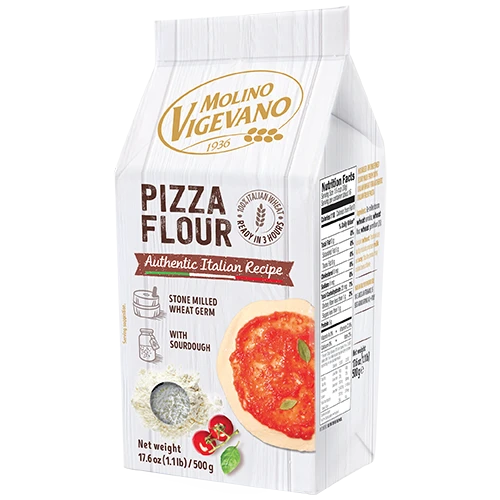Molino Vigevano’s Pizza Flour is born for pizza lovers who want to make it easily and quickly at home. Thanks to the detailed recipe and illustrations on the back of the package make the original Italian pizza, it has never been easyer. The result is guaranteed because the recipe has been studied by expert Italian pizza chefs: you will make an authentic italian pizza, tasty, light and highly digestible, like the one you eat in Italy.