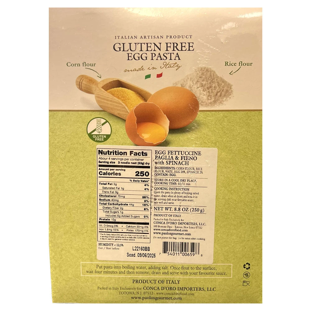 Paolo’s Gluten Free Fettuccine Paglia & Fieno with Spinach, Corn & Rice Flour,