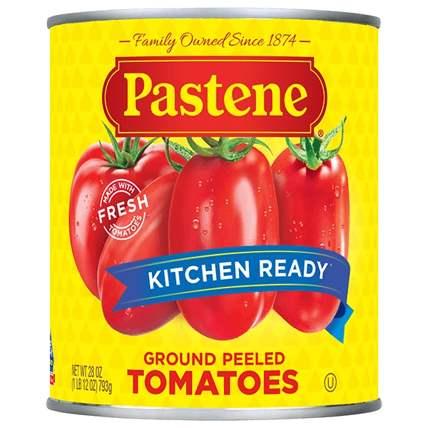 With a new label, our Kitchen Ready Ground Tomatoes are now named Kitchen Ready Crushed Tomatoes, the exact same product you know and love with a fresh new look! Quite simply the finest canned tomatoes available, Pastene’s Kitchen Ready Tomatoes are made from sun-ripened tomatoes that are peeled, crushed, and fresh-packed. We then add fresh tomato puree to make a naturally thick, sweet product that is ideal for sauces, soups, and stews. Add to your favorite recipes that call for crushed tomatoes and see the difference fresh-packed can make.