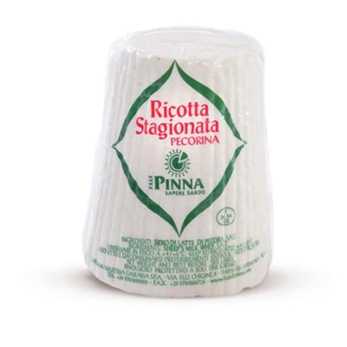A fresh sheep’s milk ricotta that is pressed, salted and naturally matures to be ideal for grating. A small ricotta cheese with a characteristic truncated cone-shape reminiscent of ancient Sardinian Nuraghi. The taste is savory and intense. The Ricotta Montella inside is hard and compact, white in color and slightly crumbly when cut. The rind is not smooth but with wavy lines because of the traditional molds used to produce it.