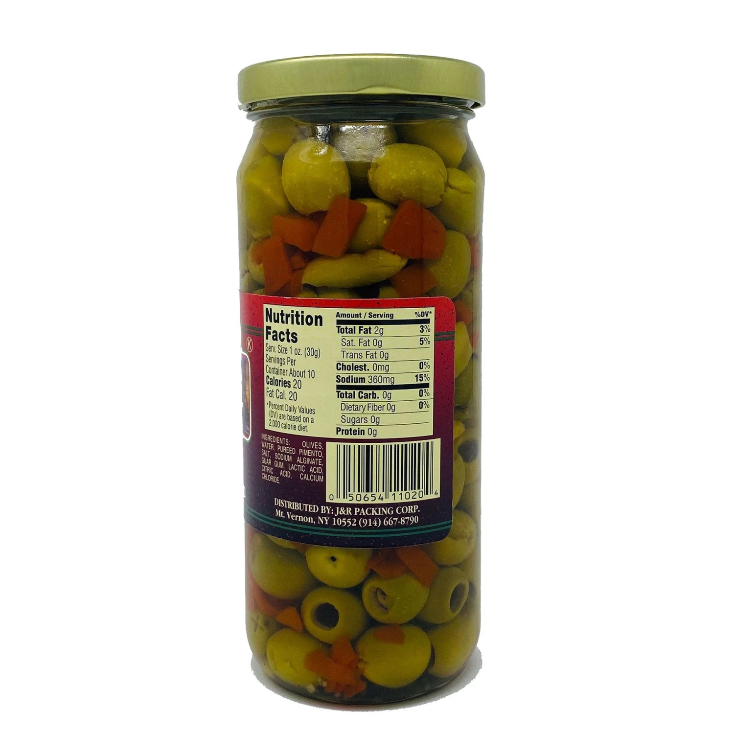 Ingredients: Olives, Water, Pureed Pimento, Salt, Sodium alginate, Guar Gum Lactic acid, citric acid, calcium chloride.