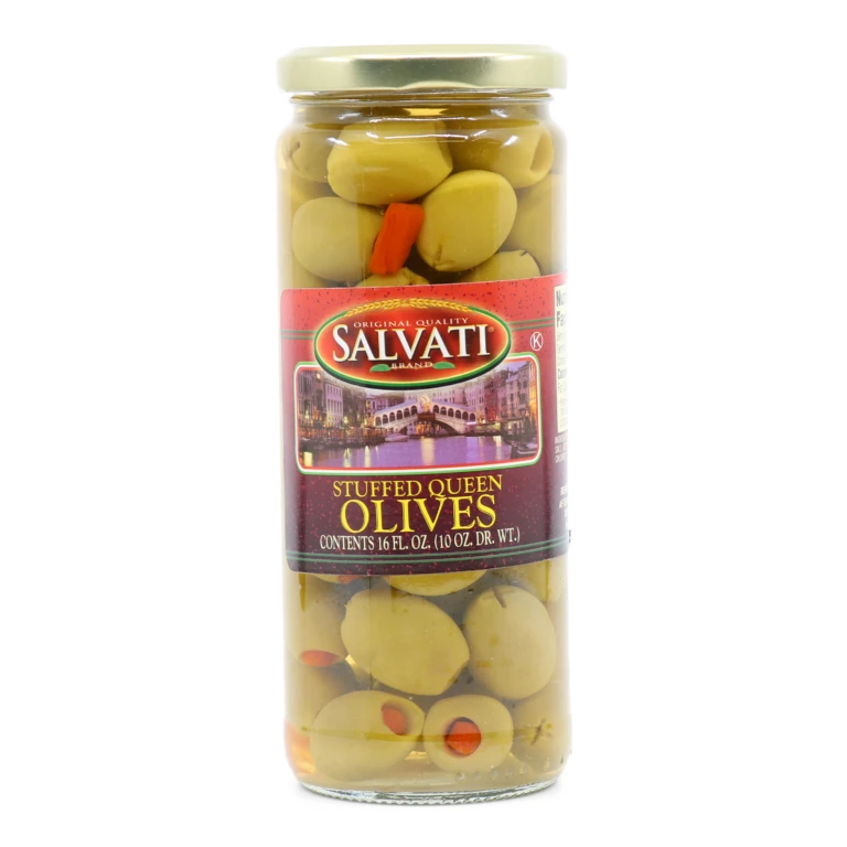 Salvati Stuffed Queen Olives with Pimento offer a delectable, flavorful experience.