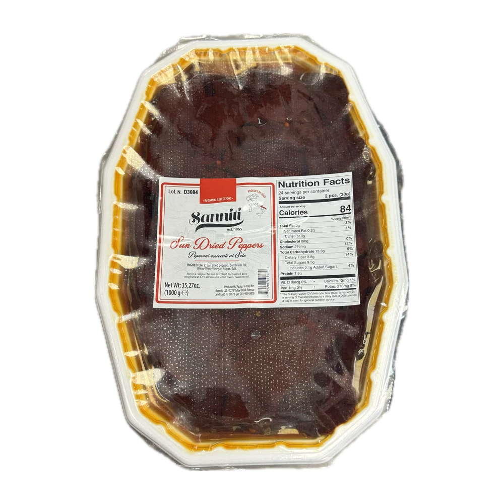 Sanniti Sweet & Savory Sun Dried Peppers are a luxurious pleasure for the taste buds! Their smooth texture and exquisite blend of sweet and tartness makes them a must-have addition to any pantry. Enjoy them in an array of dishes, from antipasti platters to sandwiches, quiches, and omelettes. Indulge your senses and tantalize your palate with these amazing peppers!