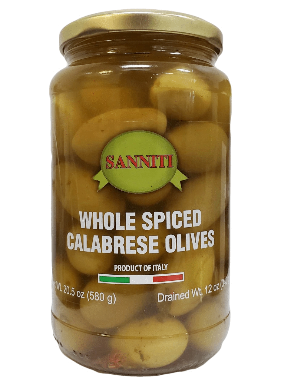 Sanniti Whole Spiced Calabrese Olives are flavored with Italian herbs and hot pepper for a wonderful burst of flavor. The spice of these Calabrese Olives adds a whole new dimension of flavor to any cheese plate, charcuterie board or antipasto.