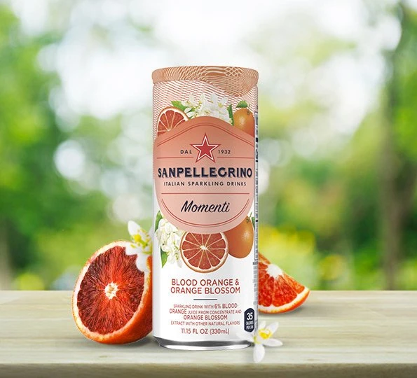 The exciting flavor mix in Momenti Blood Orange & Orange Blossom comes from the intriguing combination of real blood orange juice and delicate orange blossom extract, all carefully selected by Sanpellegrino®. Crafted with fine carbonated water into a refreshing sparkling drink, it’s the ideal way to add a splash of creativity to your day!