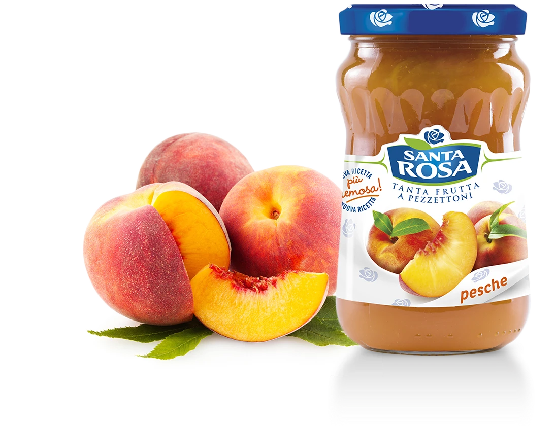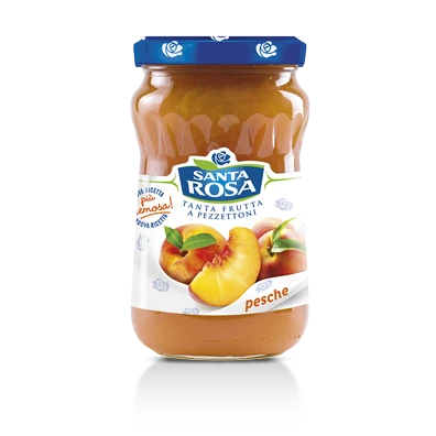 Ingredients: Peaches, Sugar, Glucose-Fructose Syrup, Gelling Agent: Pectin, Acidity Regulator: Citric Acid. The use of chunky fruit can lead to the presence of pits.
