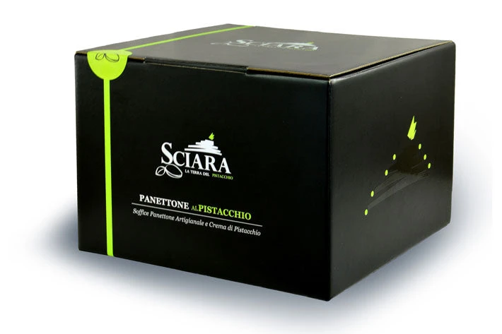Pistachio panettone by Sciara is an artisanal delicious cake created to offer all the taste of the best Pistachio. A totally handmade product, soft and fragrant, this Panettone cake (750 grams) contains all the simplicity and goodness of the best pastry creations. No candies or stuffings, it is made just with natural yeast, this Panettone is perfect for those who love the simple cakes. Sciara Panettone is available in an elegant box that contains also a 190 grams jar of Pistachio cream to be used for the filling.