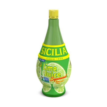 SICILIA lime juice from concentrate consists entirely of pure lime juice. Before bottling, the lime juice concentrate processed from fresh lime juice is mixed together with the previously extracted ingredients, water, and aromas and bottled as 100% lime juice.