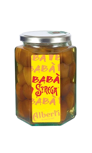 Ingredients: Water Sugar Liqueur witch (26%) (hydroalcoholic distillates of aromatic plants, water, sugar, saffron infusion) Babà (10%) [type “0” wheat flour, eggs, entirely vegetable margarine (vegetable oils and fats: palm and sunflower, water, acidity regulator: E330, flavorings), sugar, salt, natural yeast] Salt Acidity regulator: E330
