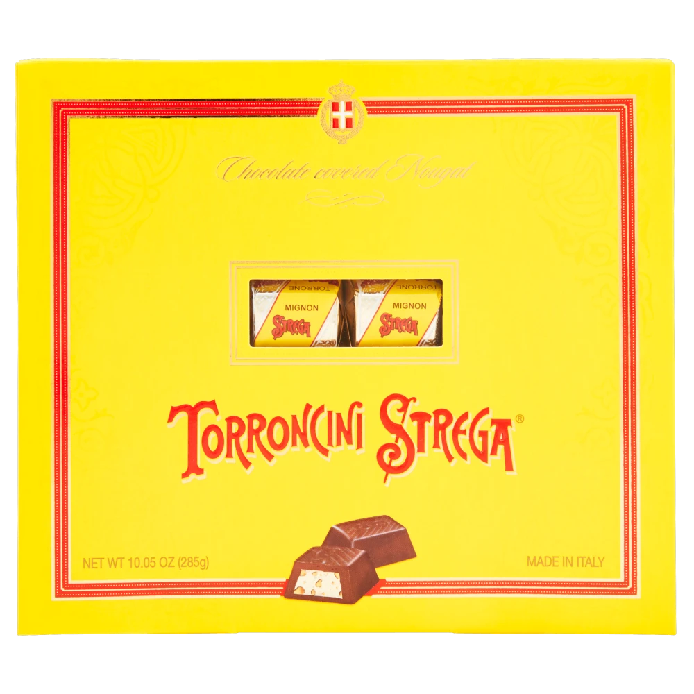 - Strega Torroncini Box contains small, individually wrapped pieces of nougats flavoured with Strega Italian Liqueur, covered with dark chocolate.