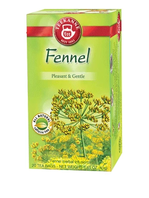 Pleasant & Soothing Fennel Herbal Infusion. All Natural, Caffeine Free. We use only the highest quality and most flavourful ingredients for our 100% all-natural TEEKANNE fennel. We control and monitor every step in the process – from the selection of original ingredients, to careful blending and packaging of the finished tea bag. The TEEKANNE aroma protecting box and the hermetically sealed tea bags preserve the full flavour of our Fennel Herbal Infusion.