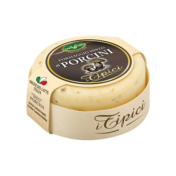 INGREDIENTS: Pasteurised cow’s milk, pasteurized sheep’s milk, porcino mushrooms ( Boletus Edulis and related group) min. 0,7%, salt, rennet, selected enzymes, flavours. Free from preservatives, EDIBLE CRUST.